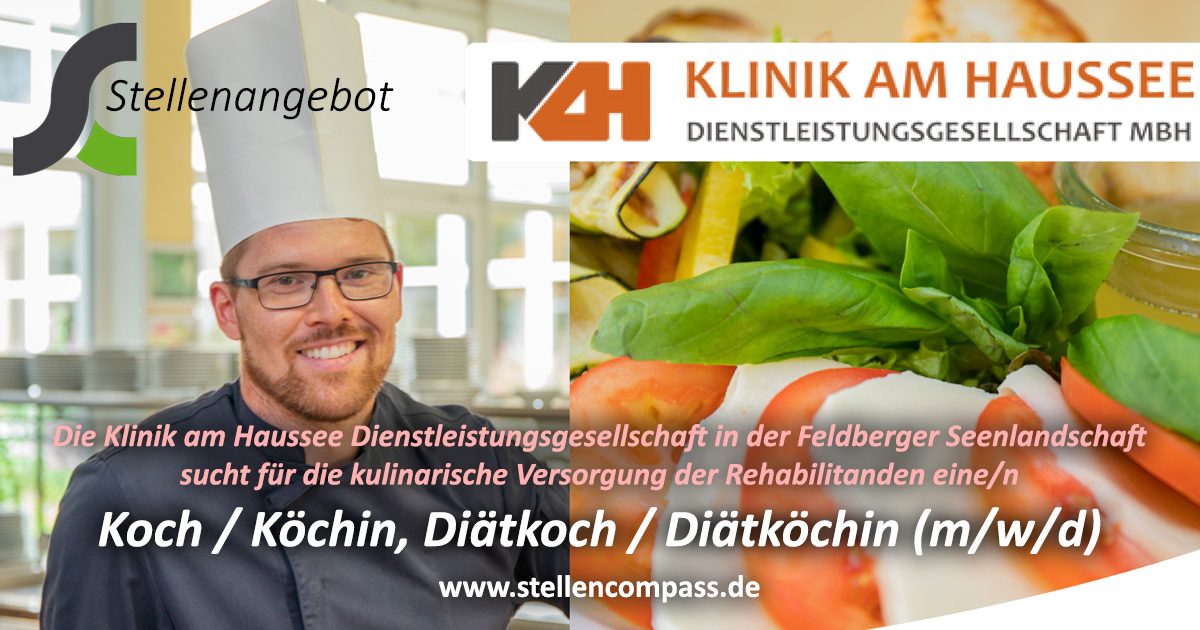 Die Klinik am Haussee Dienstleistungsgesellschaft in der Feldberger Seenlandschaft, in Mecklenburg-Vorpommern, sucht zu sofort eine/n Koch / Köchin, Diätkoch / Diätköchin, unbefristet, in Vollzeit oder Teilzeit.