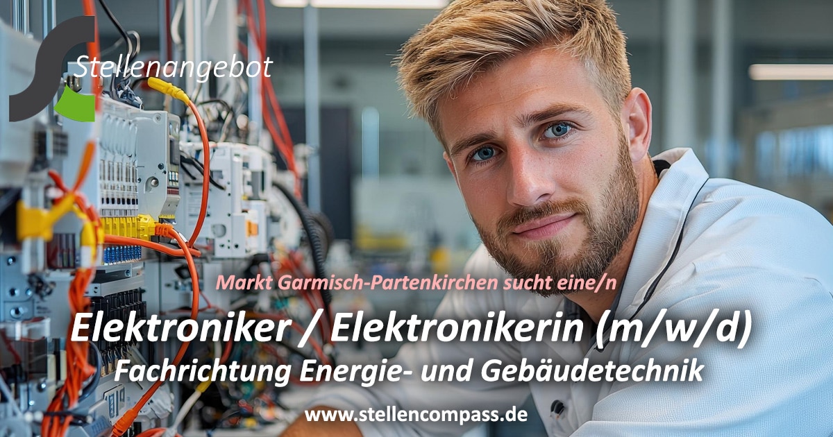 Der Markt Garmisch-Partenkirchen sucht zum nächstmöglichen Zeitpunkt eine/n Elektroniker Fachrichtung Energie- und Gebäudetechnik / Elektronikerin Fachrichtung Energie- und Gebäudetechnik (m/w/d) oder vergleichbare Qualifikation, unbefristet und in Vollzeit.